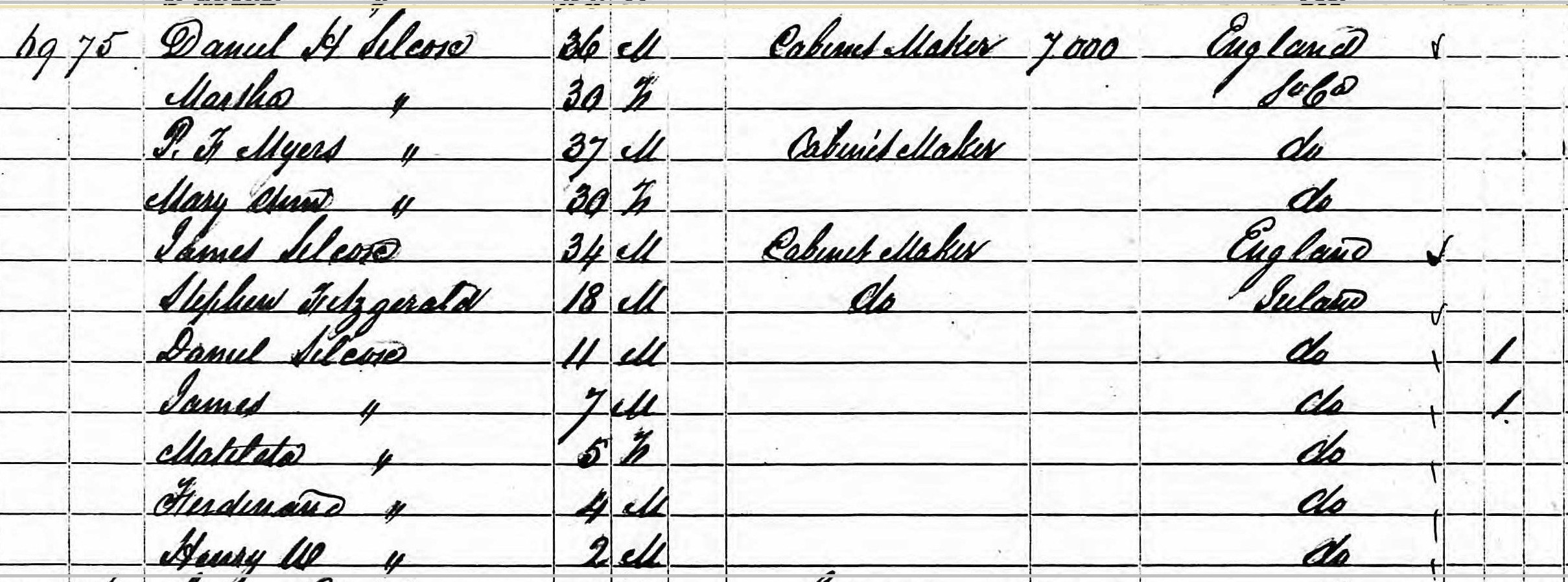 The census shows that Daniel Silcox's brother, P.F. Myers Silcox was also a cabinet maker.